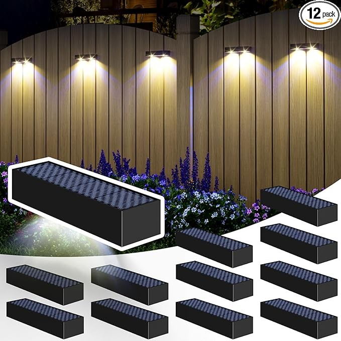 JSOT Solar Fence Lights, Step Lights, Solar Stair Lights Outdoor Deck Lights Solar Pool Lights Solar Fence Lamp Solar Wall Lights Outdoor Lighting Decor for Patio Front Porch Garden Pathway Backyard