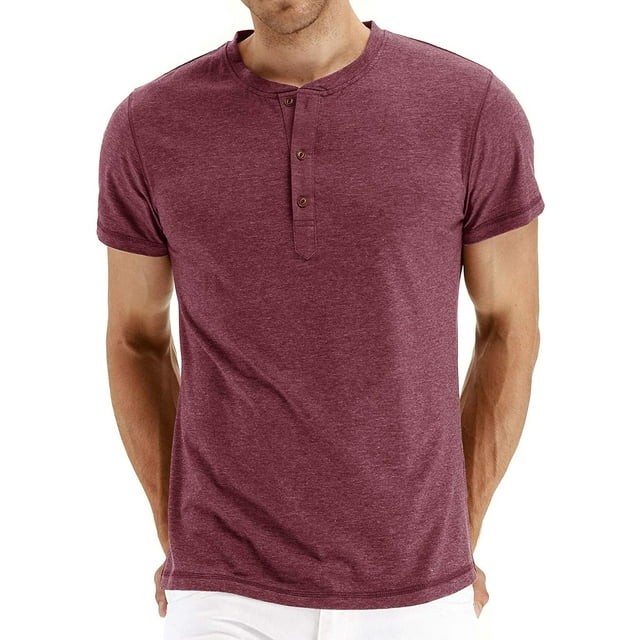 JWD Casual henley summer T-shirt *Size: US Size,Model in size M.Model information(Height:6'1",Weight:183Ib,Chest:40"). *Material:95% Cotton, 6% Spandex.Preshrunk cotton shirt. *Type:Slim fit, Stylish button design, you can adjust to your favorite way of wearing. *Our mission is provide you with premium everyday apparel.We will develop more colors for selection. *Tips:Machine-Wash.Do Not Bleach.