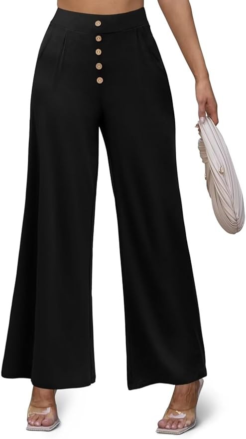 Women Flowy Pants Designs: high waisted in chic v crossover / button decoration elastic waist design, the fabric is super soft, kind of like pajama pants,fashionable but also comfortable enough to wear around the house all day long. Fashion classic design shows the leg curve tall and straight. while deep side pockets give you somewhere to keep a hankie or cellphone.