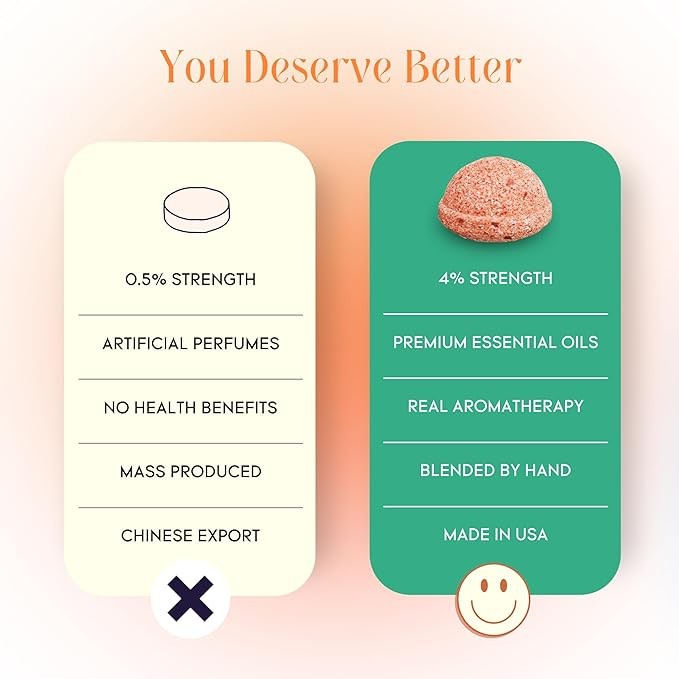 • Kalpa boasts an impressive 4% concentration of wild-harvested organic essential oils, precisely calibrated to unleash a vapor of unparalleled intensity for a truly transformative impact on your mind, body, and soul. Don't compromise with lesser shower steamers that feature a feeble 1% blend of artificial perfume. Choose the best for an extraordinary experience.