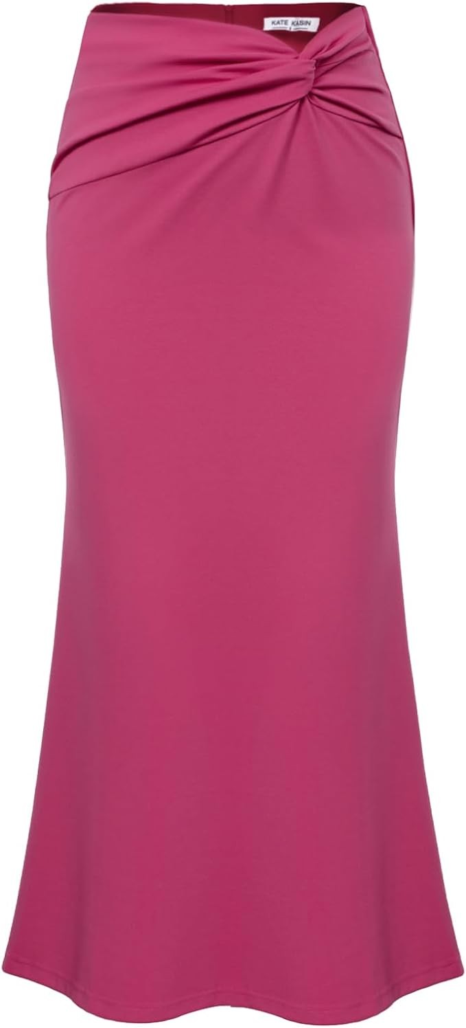 Kate Kasin Women's 2024 High Waist Pencil Skirts Side Knotted Stretch Fishtail Bodycon Maxi Long Skirt for Business Casual
