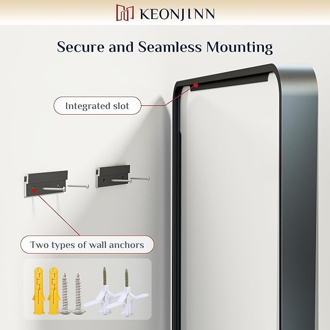 • 【Seamless Installation with Ease】 The integrated slot design of our bathroom mirror two types of wall anchors included ensures a secure and hassle-free mounting. Whether vertically or horizontally hung, our black mirror seamlessly integrates into your space, elevating your bathroom with ease.