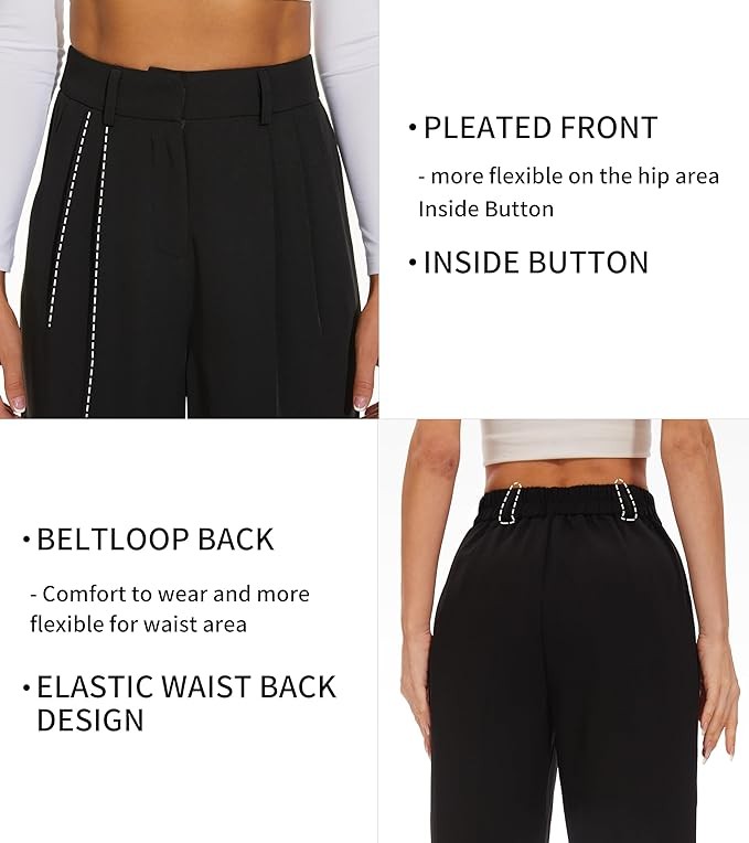 • FEATURE -- Back elastic waist, high-waisted wide leg style, pleated front, loose fit, breathable and soft fabric, zipper closure, two side pockets