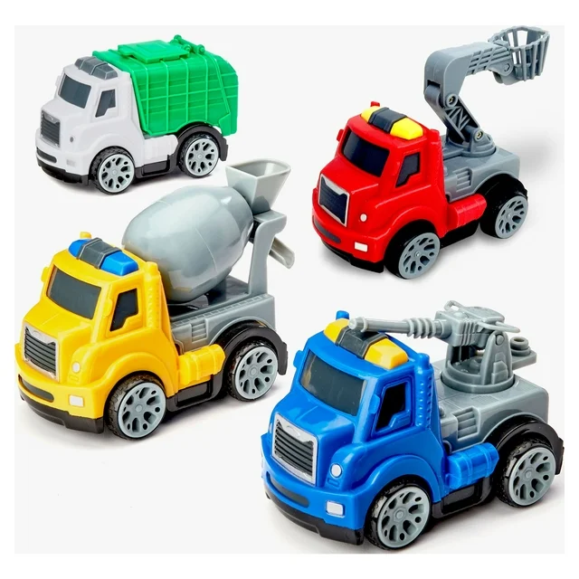 Kid Connection Friction Powered Utility Trucks Play Set, 4 Pieces
