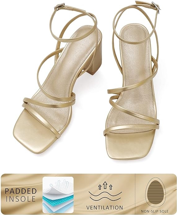 MATERIAL: The strappy heels feature a soft and cushioned insole for all day walking comfort.