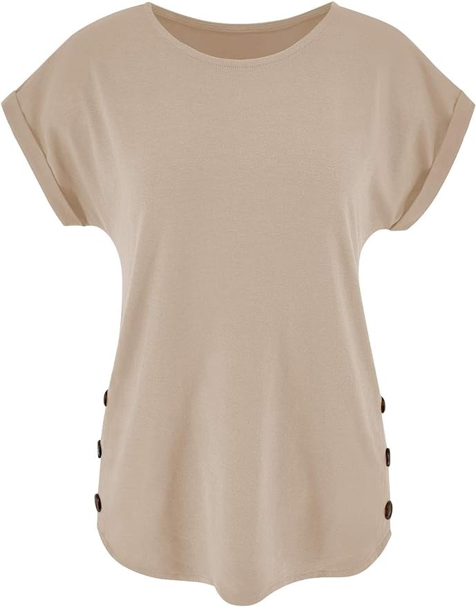 Limerose Women's Short Sleeve Tops Crew Neck Side Button Shirts Casual Loose Fit T-Shirt