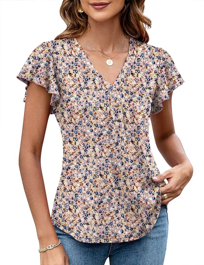 • Features: dressy t-shirts with ruffle sleeves, short sleeve soft knitted tops, floral, lightweight, loose, a must-have women's tops in Your Wardrobe