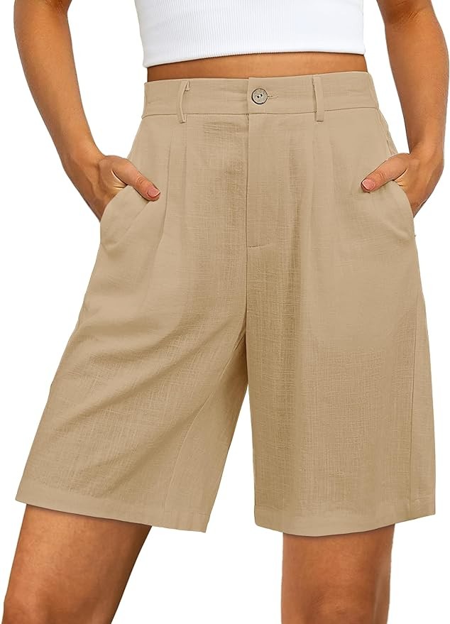 luvamia shorts for women feature high waisted, elastic back, wide leg fit, folds on the front and 2 side pockets. The dress shorts for women are crafted from soft linen fabric which is perfect for spring, summer, and fall.