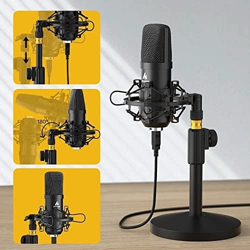 • COMPATIBLE WITH ALL OS: For all Laptops, PC and Mobile phones. But if you want to connect with phone, you need an OTG adapter (not included). Strong output, no distortion, low power consumption. PACKING LIST: Maono USB mic + Shock Mount + Table stand+Pop filter+ Wind foam+USB-B to USB-A Cable