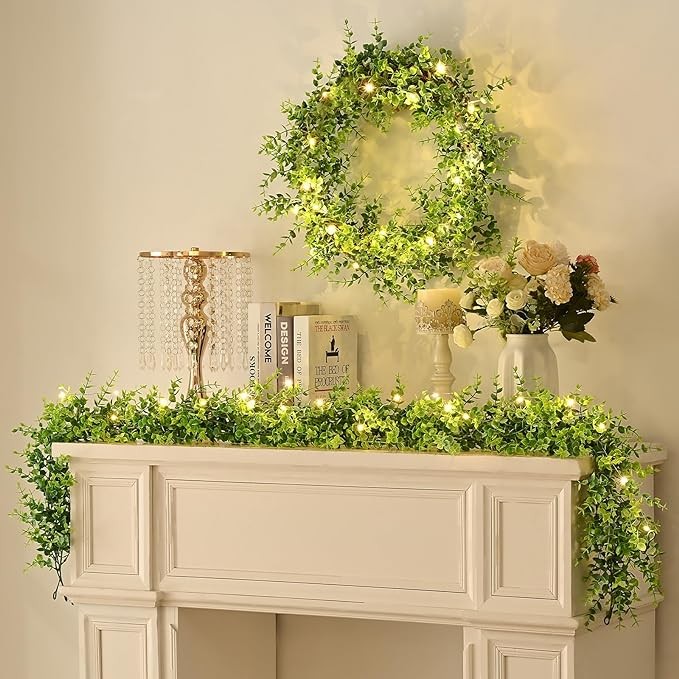 MULTIPLE USES: Artificial eucalyptus vines are a great decoration for home, wedding, party, baby shower, holidays, festival decoration. It is suitable to embellish arches, walls, tables, windows, mirrors, fireplaces, mantle, doorways, kitchen, cabinets, corridors, and also easy to match with other plants to DIY your own decoration.