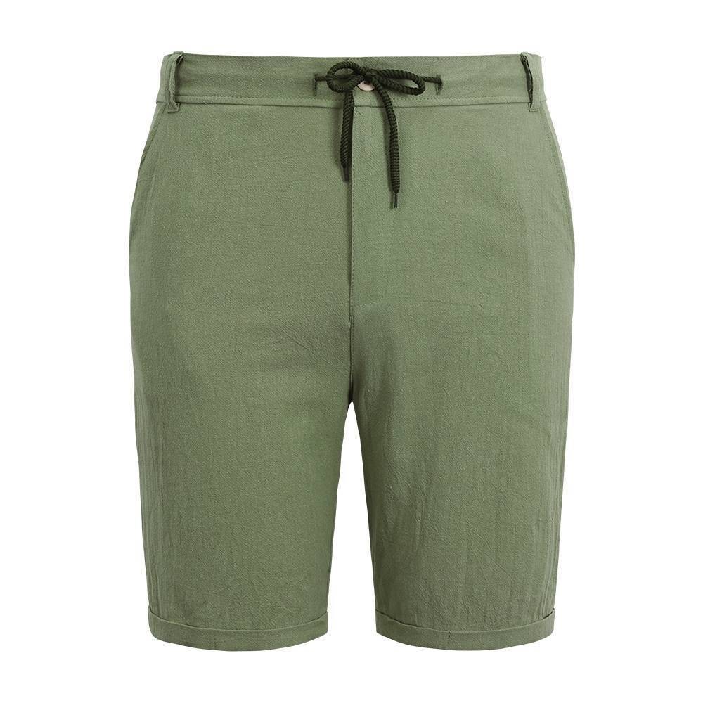 Mens Cotton Linen Shorts Elastic Waist Drawstring Summer Casual Loose Half Pants