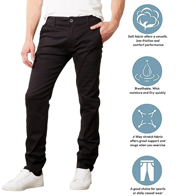 Mens Slim Fit Cotton Stretch Chino Pants (3-Pack)