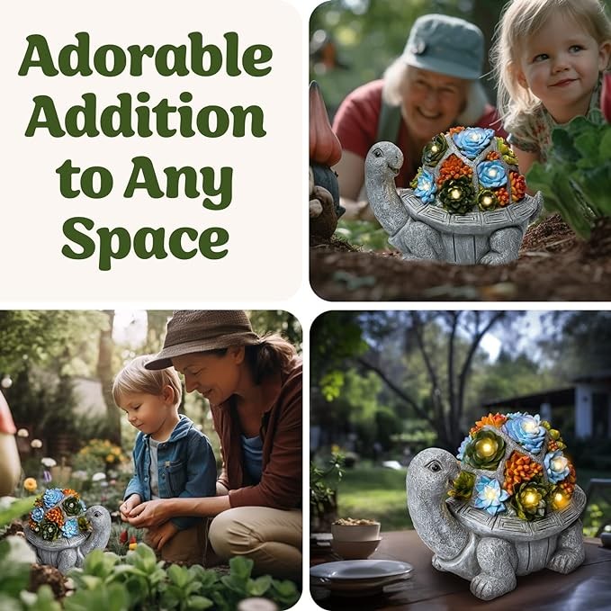 • Unique Gift for Garden Lovers - Surprise garden enthusiasts with our solar turtle decor! Click 'Add to Cart' now to give our solar garden statues during a housewarming, birthday, or Mother's Day!