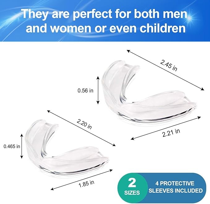 • Multi-Purpose Mouth Guard: The mouth guard for clenching teeth at night stops teeth grinding, the multi-purpose Mouth Guard for Grinding Teeth can also be used as a teeth tray and as a sports guard to prevent sports-related tooth impact.