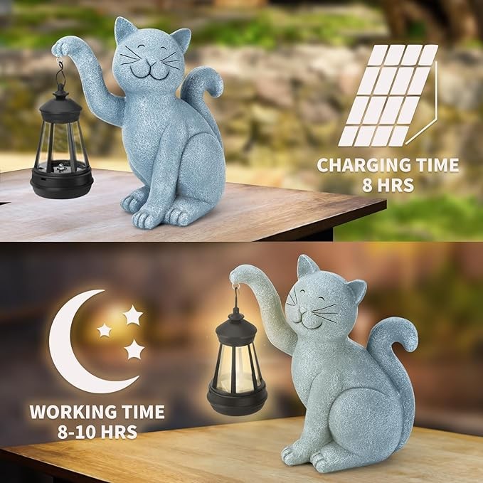 【Sun Protection + Waterproof】The outdoor solar cat light is hand-painted, the exquisite coating is waterproof, UV-proof, and durable, and is made of high-quality resin, no matter it rains or winds blowing. It will not fade due to being left outdoors for a long time, and the waterproof rating reaches IP44. Letting you worry-free is our biggest motivation. garden decoration