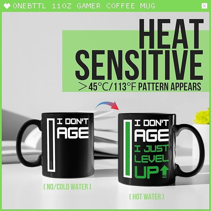Onebttl Gamer Mug Gifts for Men, Gaming Coffee Mug, Ceramic Heat Changing Mug, Gift Idea Cup For Christmas, Birthday- I JUST LEVEL UP 2024