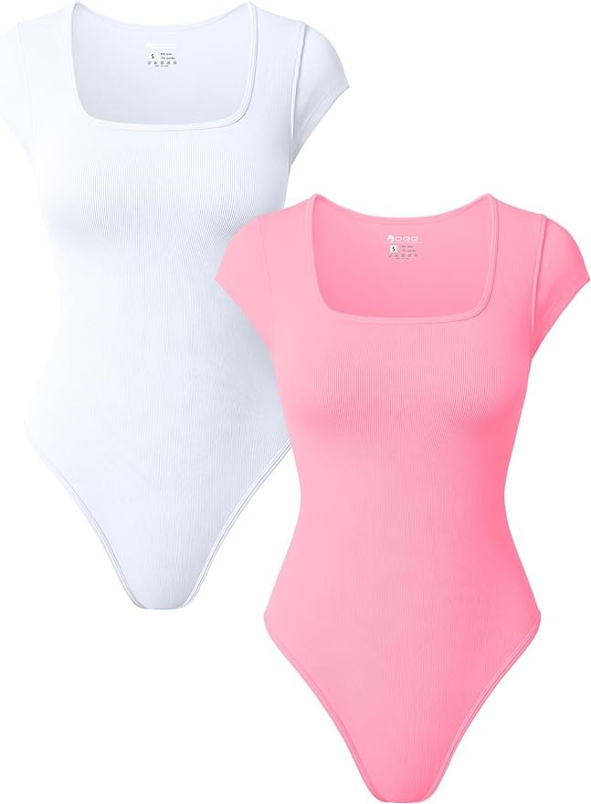 OQQ Women 2 Piece Bodysuits Square Neck Short Stretch Basic Sexy Shirts Bodysuits