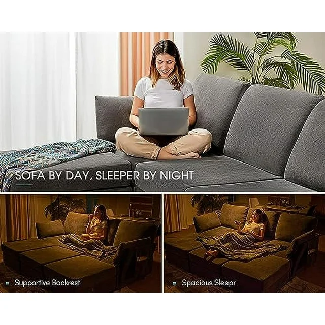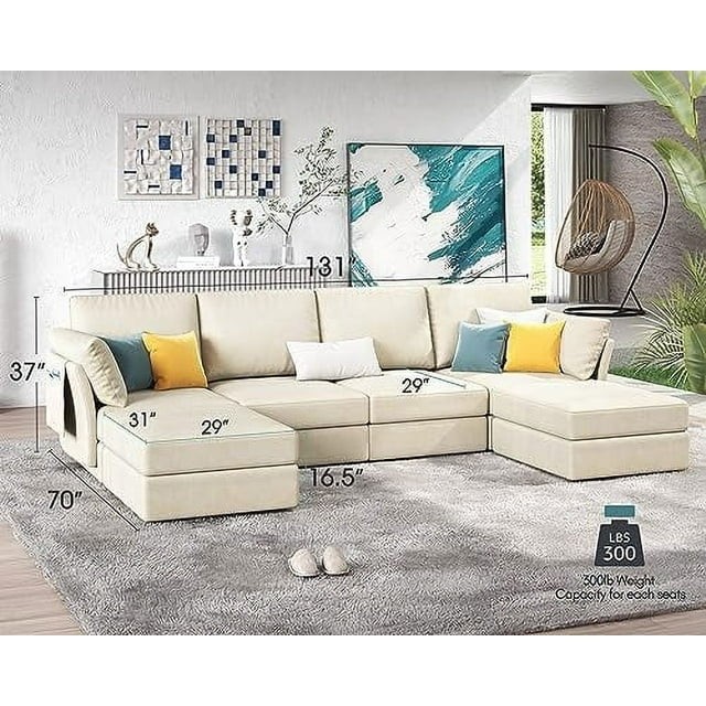 • Modular Design for Growing Families: Allows for versatility and flexibility, Effortless to disassemble and transport with extra large sectional sofa. Easily combined into L- shaped sofa or sleeper sectional sofa.