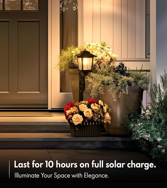 • ?【2 in 1 Solar Lights】Solar lamp post light has 2 working options for you. You can put them flat on a surface as a pathway light, or hang them on a wall or spike them in your yard as a wall light. Wherever you want, this outdoor solar light can provide a bright view for you.Package includes 1 outdoor post light with plastic planter