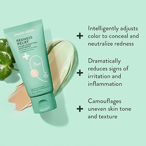 • Peach Slices Redness Relief Color Correcting Moisturizer instantly conceals and corrects redness while deeply moisturizing and calming skin. Clean Color Correcting Technology intelligently adjusts color to leave red, irritated skin looking even, and smooth.