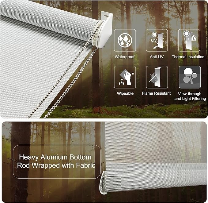 Persilux Solar Shades Light Filtering Window Shades (32" W x 72" H, Grey) UV Protection Flame Retardant, Semi Sheer Roller Shades for Windows, Home, Kitchen, Office Easy to Install