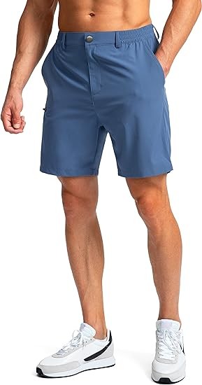 • Closure Type: Men's dress shorts with elastic waistband and 1.7" belt loop design to improve product fitness. Zipper fly and button closure are built for long-lasting durablility.