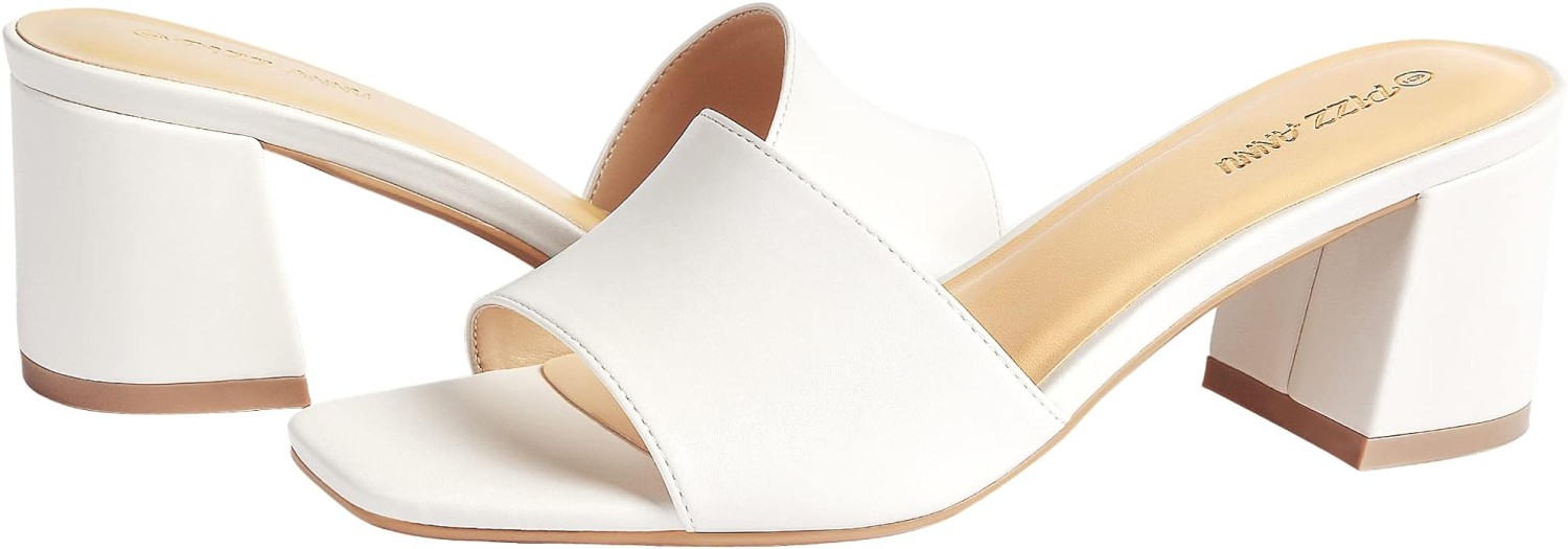 PIZZ ANNU Women's Square Open Toe Heels Sandals Low Block Chunky Heeled Sandal Slip on Mules Comfortable Casual Dress Pumps Shoes