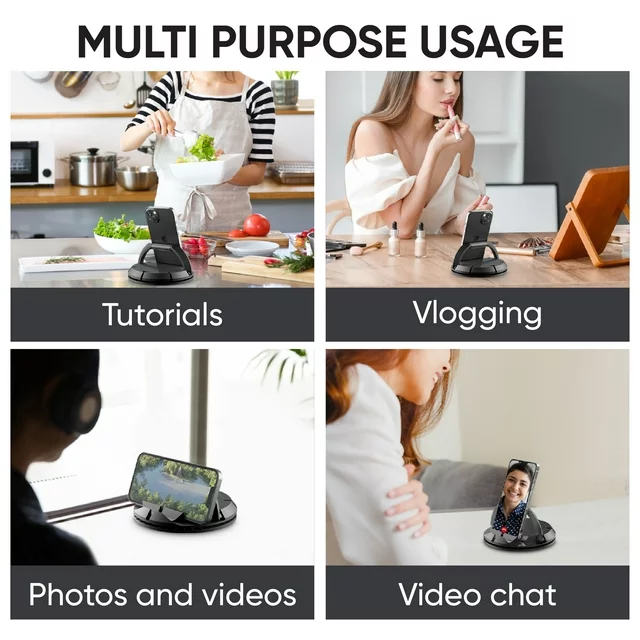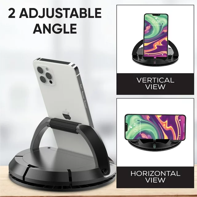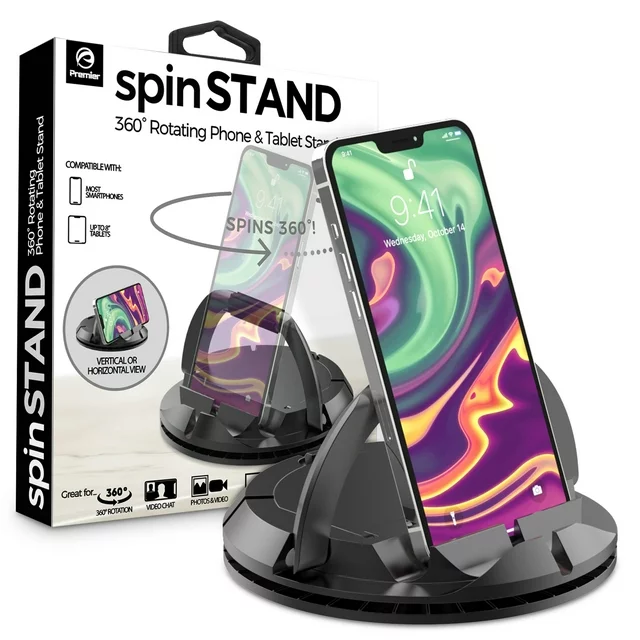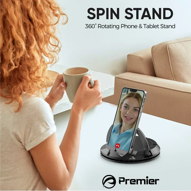 Attention tech lovers! Tired of holding your phone or tablet for extended periods while trying to watch videos, take photos, or attend video conferences? Say goodbye to sore arms and hello to the Premier Spin Stand - the ultimate 360-degree rotating phone and tablet stand. This premium cell phone holder is perfect for vlogging, video chats, web browsing, and more. With its unique 360-degree rotating base, you can easily adjust the viewing angle to find the perfect position while reducing annoying glare. You'll be pleased to know that this versatile electronic stand is compatible with most smartphones and tablets, making it the perfect addition to your home or office. Whether you have an iPhone 14/14 Plus/14 Pro/14 Pro Max/ iPhone 13/13 mini/ 13 Pro/13 Pro Max/ 12/ 12 mini/12 Pro Max/11/ 11 pro/ SE/ XS/ X/ 8/ 7/ 6/ 5/ 4, Samsung Galaxy S21/ S20/ S10/ S10+/ S10E/ Note10/S9/ S8 /S7 /S6 / S5, Sony, LG, Google/ Nexus, or another popular mobile device, this stand has got you covered. Action time! Upgrade your viewing experience and enjoy the convenience of hands-free device use with the Premier Spin Stand. Don't wait any longer - order yours today and experience the difference it can make in your daily routine. Say goodbye to tired arms and hello to effortless convenience with the Premier Spin Stand!