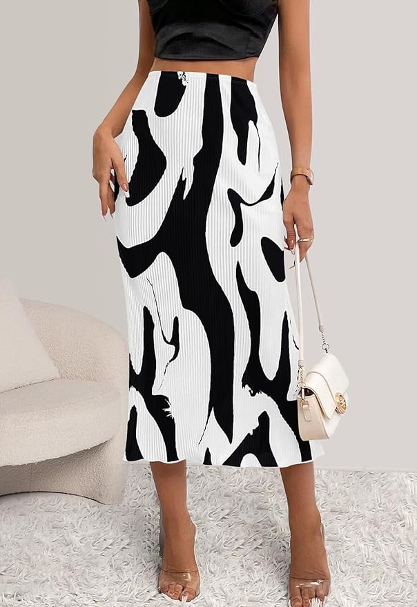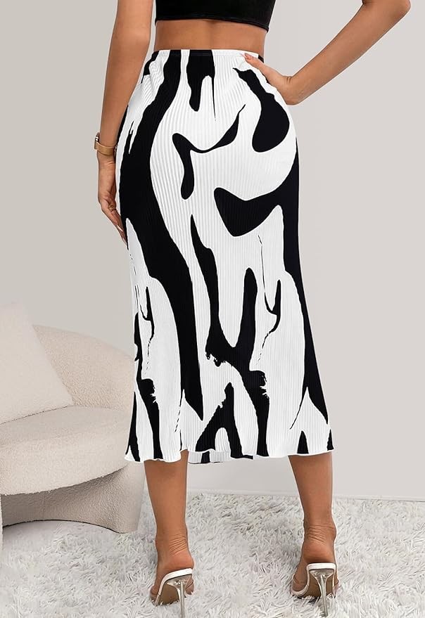 • FEATURES: Unique print women's skirts, Classic plisse midi skirt, Elastic waistband, High waisted skirts for women trendy, Ruffle hem long skirt. A versatile womens skirt goes well with any types of top, tube, tank, shirt, blouse, etc.