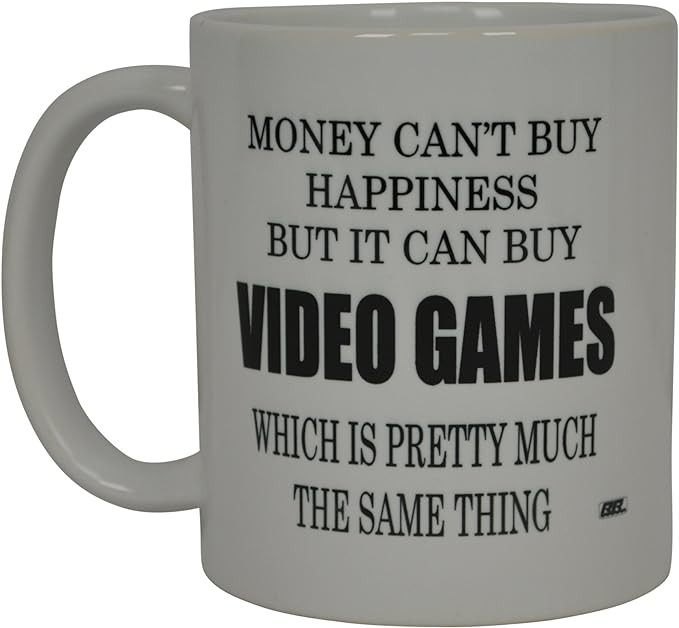 Rogue River Tactical Best Funny Coffee Mug Money Can't Buy Happiness But It Buys Video Games Gamer Video Games Novelty Cup Great Gift Idea For Men or Women