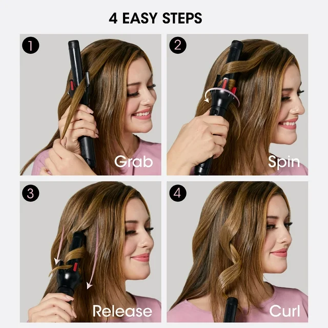 • CURLS IN A FLASH: Build perfect, long-lasting curls at the push of a button; Instant 60-second heat-up time makes styling quick and easy; 5 easily adjustable temperature settings, from 250-450°F; Create a salon-style look for all hair types