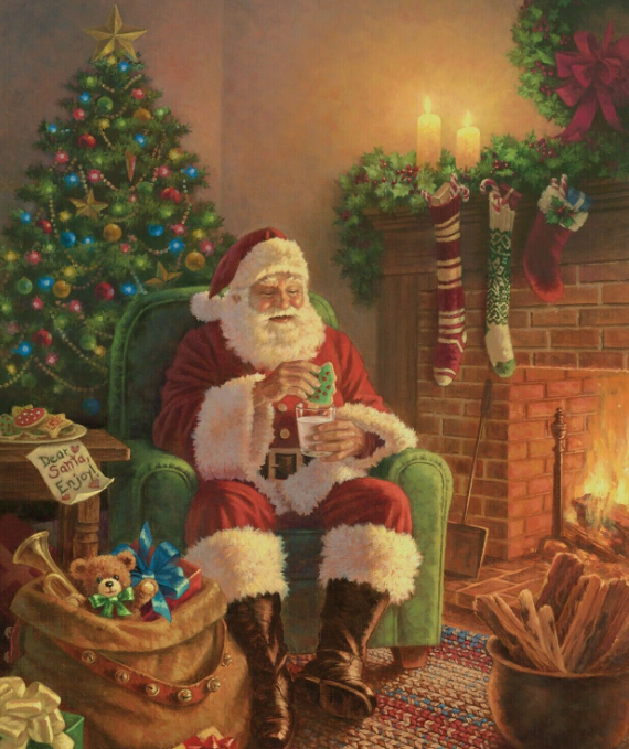 Santa Claus Milk Cookies Mantle Christmas Riley Blake Fabric 1Yard Panel #P9540