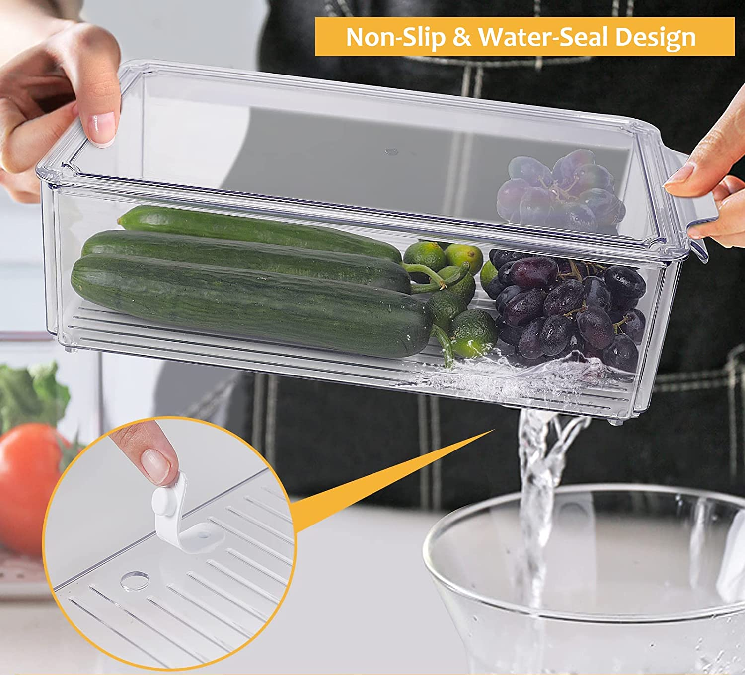 Set of 10 Refrigerator Organizer Bins Stackable with Lids, Fridge Organizers and