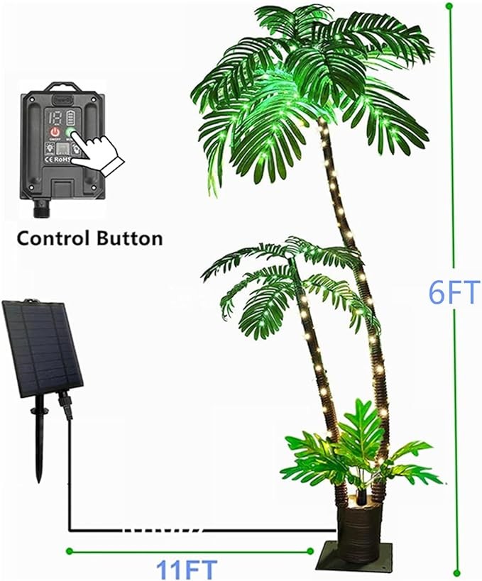 • ?FLEXIBLE CONTROL OPTIONS: Our lifelike Artificial Palm tree's LED lights offer versatile control options, Use the included remote to effortlessly control the lights by pointing it at the adapter, or conveniently adjust them using the buttons on the adapter itself. Enjoy ultimate control at your fingertips.