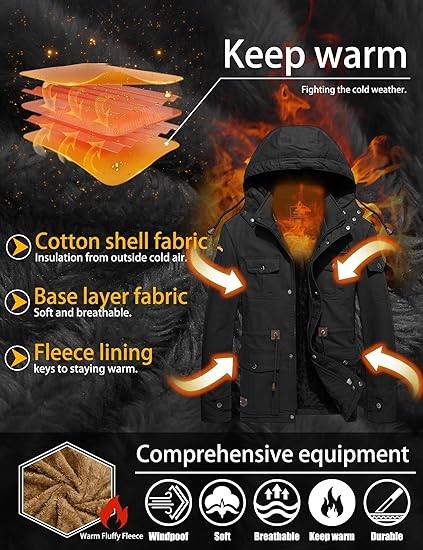¡¾Occasions¡¿Mens winter jacket can be used in a variety of scenarios such as working, hunting, traveling, military, tactical, hiking, camping, training, motorcycling, daily casual wear.