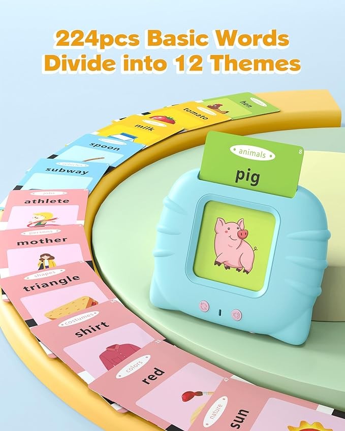 Talking Flash Cards for Toddler 1 2 3 4 Year Olds, Language Learning Toys, Pocket Speech Therapy Toys, Autism Toys, Montessori Toys with 224 Words, Children's Sensory Learning Educational Gifts