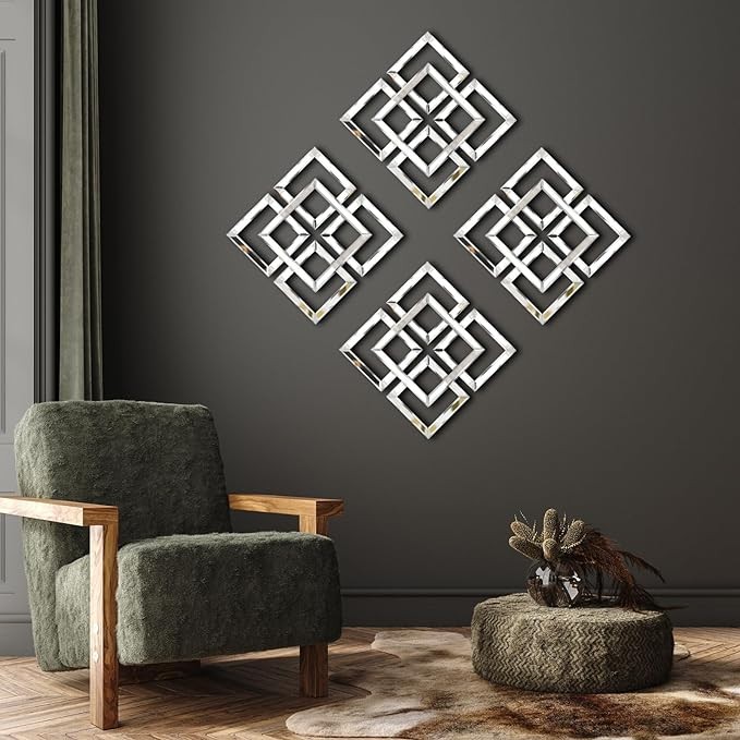 Tatuo 4 Sets Silver Mirrored Wall Decor 16 x 16 Inches DIY Wall Mounted Mirrors Gorgeous Glam Decorative Modern Square Mirror Wall Art for Living Room Home Bedroom