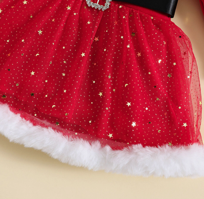 Toddler Girls Christmas Costume Comfortable 2Pcs Santa Claus Dress Velvet Soft