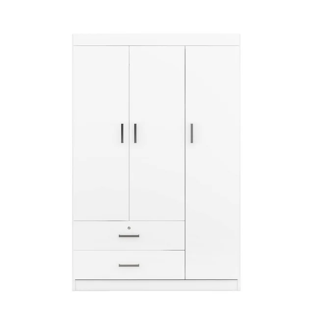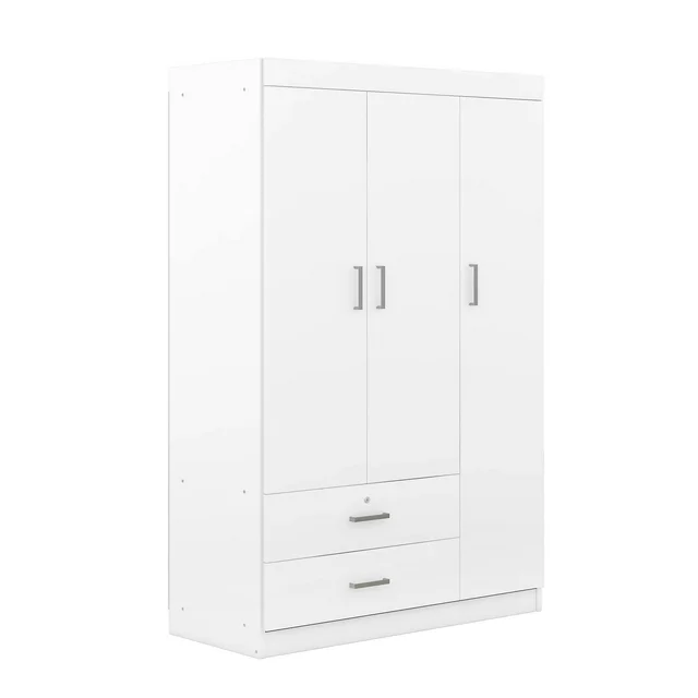UBesGoo 3-Door Wardrobe, Wide Armoire with 2-Drawers, Clothing Rod and 3-Shelves in White