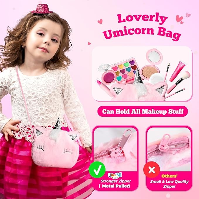 ULOVEME Kids Real Makeup Kit for Little Girls with Umicorn Bag - Real, Non Toxic, Washable Make Up Toy - Umicorn Toys Gift for 3 4 5 6 7 8 9 10 12 Years Old Girls Birthday