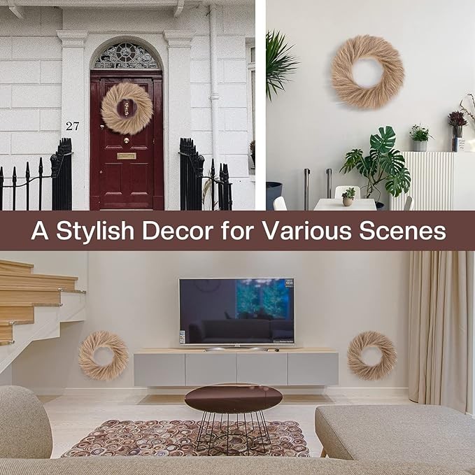 • VERSATILE DÉCOR ELEMENT: Our pampas grass wreath is incredibly versatile. It can be used as a wall hanging, door accent, or table centerpiece, making it a dynamic piece for any space. With a convenient hook at the back, it's easy to display and move around as needed, allowing you to effortlessly transform your home.