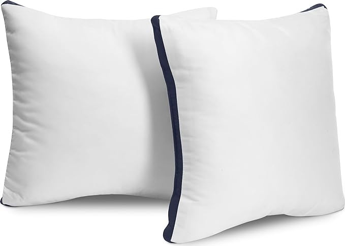 • GUSSET ACROSS EDGES - The 2 pack consist of white pillows with elegant navy-blue gusset and double stitching across the edges for a stylish and deluxe finish.