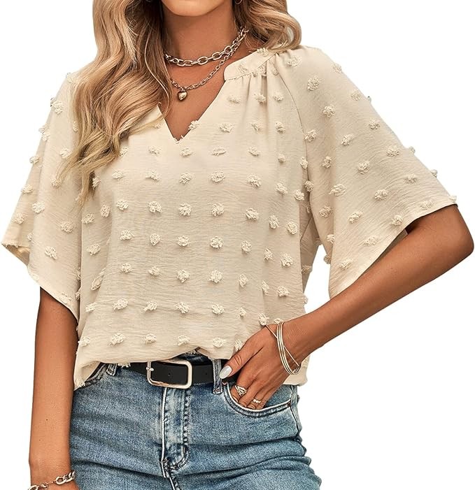 vanberfia V Neck Ruffle Sleeve Blouse Flowy Shirts Dressy Summer Casual Women Tops