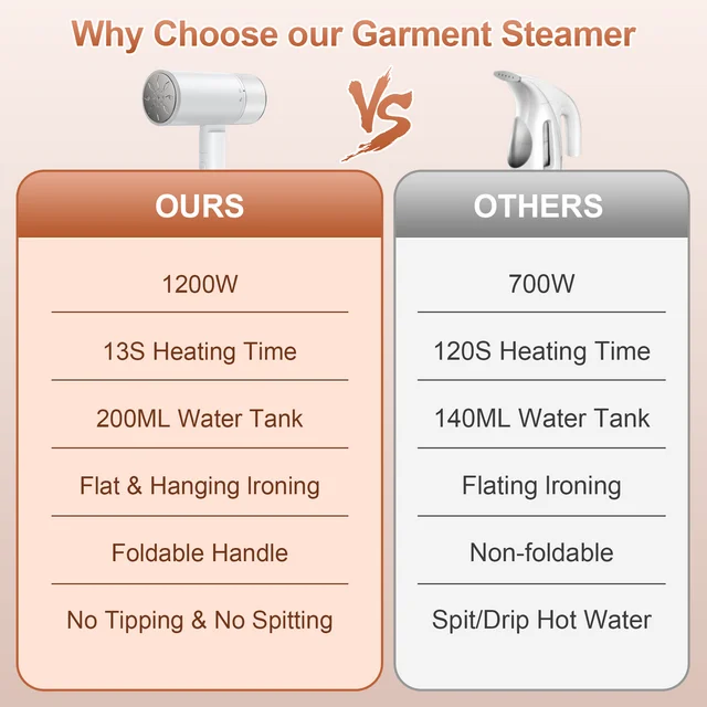 Ever faced the morning chaos of rummaging through your closet, only to find your favorite shirt crumpled? VAVSEA handheld steamer for clothes equipped with 1200W strong steamer power, 13s fast heating and 200ml water tank. It can allows you to effectively remove wrinkles in the shortest possible time! With a folding design, this small travel garment steamer is your perfect travel companion.