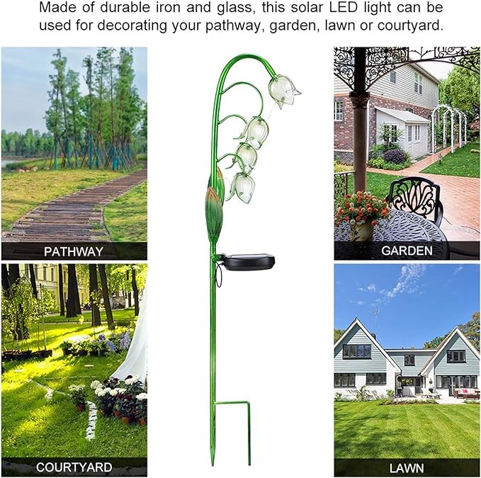 Unique Design & Premium Quality: The outdoor flower light is composed of glass flower,iron pole,led lamp and plastic solar panel,improving quality and appearance.The pretty rose flower stake makes the garden more vivid and bright, whether it is day or night can be well decorated garden.