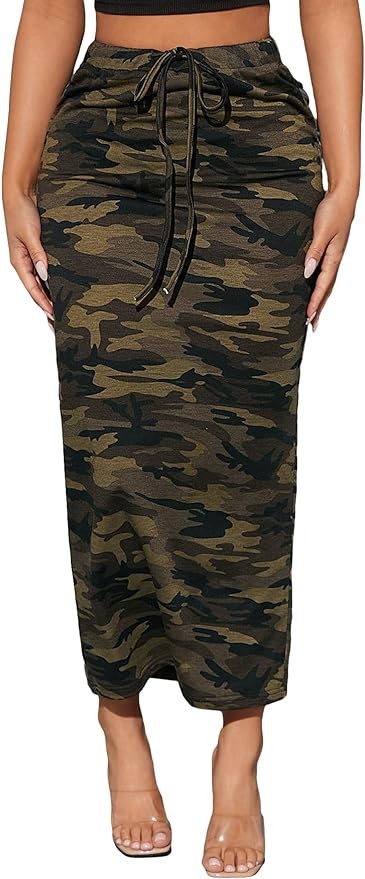 Verdusa Women's Drawstring Side Elastic Waist Long Bodycon Maxi Cargo Skirt