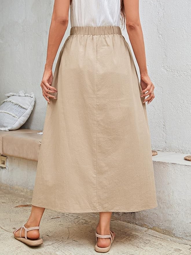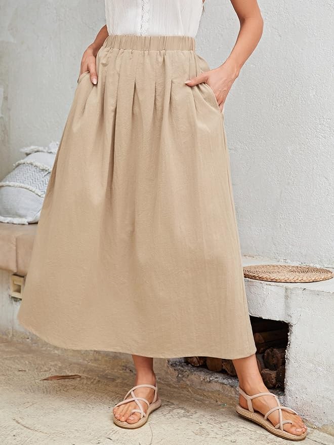 Verdusa Women's Pocket Side Elastic Waist A Line Maxi Long Skirt