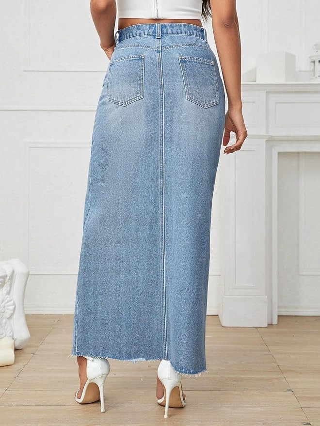 Verdusa Women's Split Thigh High Waist Bodycon Maxi Denim Skirt