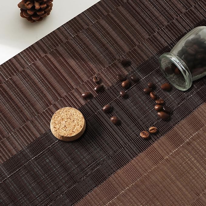• Size: 17.7x11.8 in (45x30cm), placemats set of 4, Accommodate your bowls, and plates for daily use. Brown stripes with black, showing gradient colors under the unique weaving process, beautiful and fashionable, more compatible with chocolate coffee.