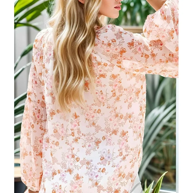 Casual basic shirts for women, chic floral design, long bell sleeve, it makes a chic and elegant style.